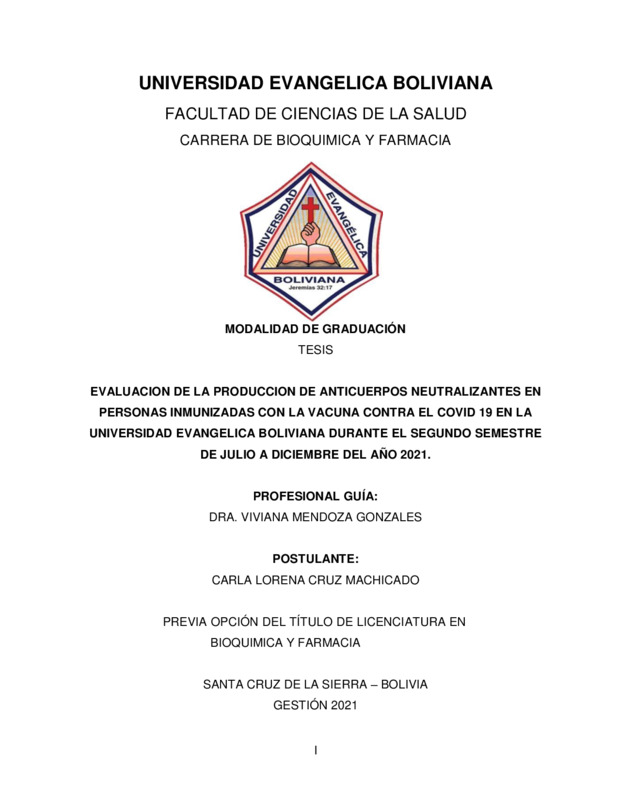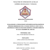 La presente investigación tuvo como objetivo evaluar la producción de anticuerpos neutralizantes contra el virus SARS-CoV-2 en personas inmunizadas con diferentes plataformas de vacunas dentro de la comunidad de la Universidad Evangélica Boliviana durante el segundo semestre de 2021. Los anticuerpos neutralizantes son un componente crítico de la respuesta inmune, ya que tienen la capacidad de bloquear la entrada del virus a las células del huésped. La metodología aplicada fue de tipo descriptivo, cuantitativo, transversal y no experimental. Se trabajó con una muestra de 50 individuos voluntarios, a quienes se les realizó una encuesta epidemiológica y la toma de muestra sanguínea para la detección de anticuerpos mediante la técnica de ELISA competitiva. Los resultados revelaron que el 96% de la población estudiada desarrolló anticuerpos neutralizantes tras la inmunización completa. Al analizar por tipo de vacuna, se observó que la vacuna Sputnik V y AstraZeneca mostraron niveles de positividad del 100%, mientras que Sinopharm presentó una positividad del 93.1%. Asimismo, se identificó que las personas que tuvieron una infección previa por COVID-19 antes de ser vacunadas desarrollaron niveles de anticuerpos significativamente más altos en comparación con quienes no enfermaron. Se concluye que las vacunas utilizadas en el país cumplen con el objetivo de inducir una respuesta inmune humoral efectiva. Este estudio proporciona datos locales valiosos sobre la eficacia de los planes de inmunización y sirve como base para futuras investigaciones sobre la duración de la memoria inmunológica en la población universitaria cruceña.