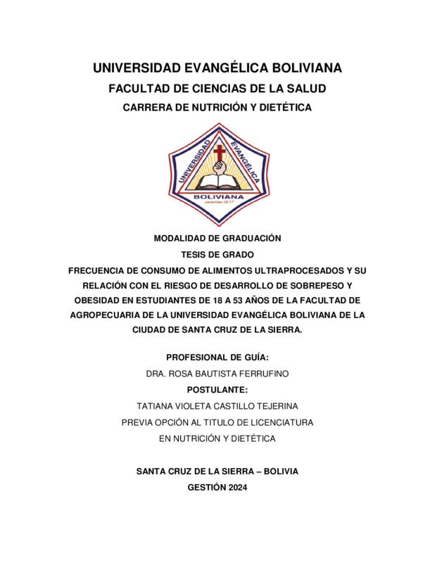 Frecuencia de consumo de alimentos ultraprocesados y su relación con el riesgo de desarrollo de sobrepeso y obesidad en estudiantes de 18 a 53 años de la Facultad de Agropecuaria de la Universidad Evangélica Boliviana de la ciudad de Santa Cruz de la Sierra