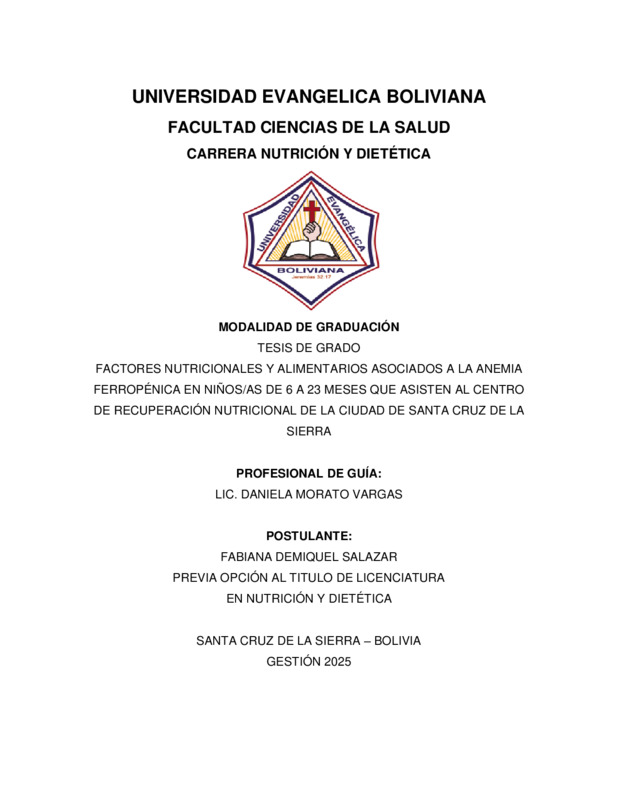 Factores nutricionales y alimentarios asociados a la anemia ferropénica en niños/as de 6 a 23 meses que asisten al centro de recuperación nutricional de la ciudad de Santa Cruz de la Sierra