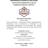 Estado nutricional y composición corporal bicompartimental relacionado con la prevalencia e intensidad de las alteraciones menstruales en las alumnas del Colegio Hermanos Antonio y Marcos Cavanis de la ciudad de Santa Cruz de la Sierra