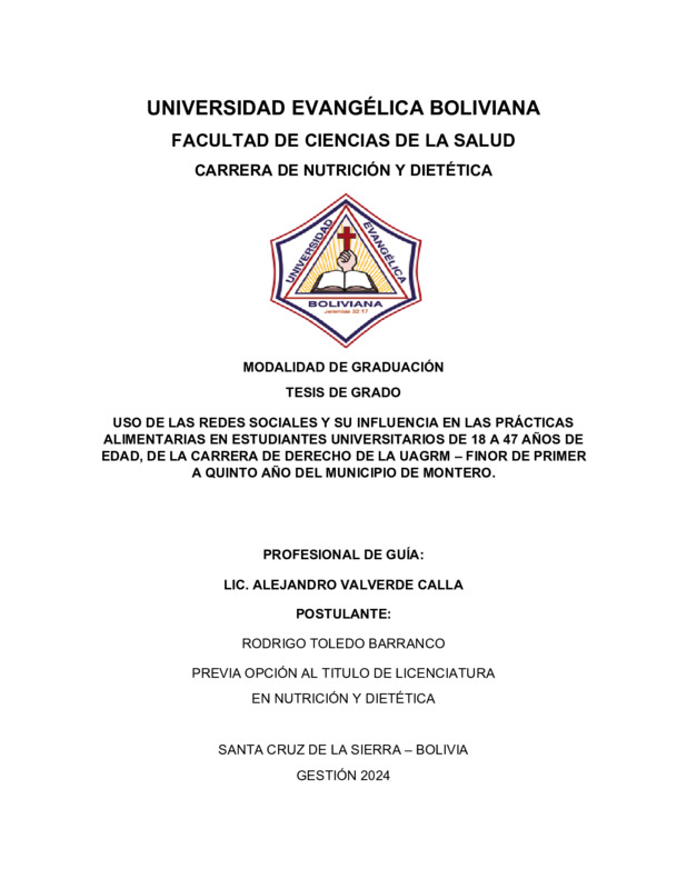 Uso de las redes sociales y su influencia en las prácticas alimentarias en estudiantes universitarios de 18 a 47 años de edad, de la Carrera de Derecho de la UAGRM – FINOR de primer a quinto año de la ciudad de Montero.